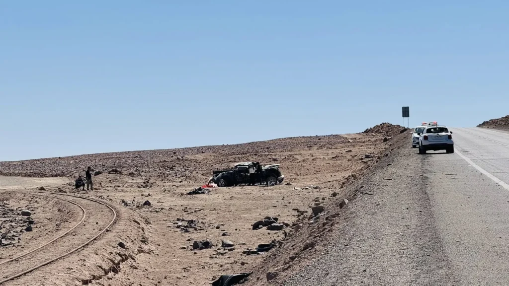 Un grave accidente de tránsito se registró en la Ruta 5 Norte, a la altura de Quillagua, dejando al descubierto la magnitud del impacto luego de que un vehículo quedara completamente destruido en medio del desierto.